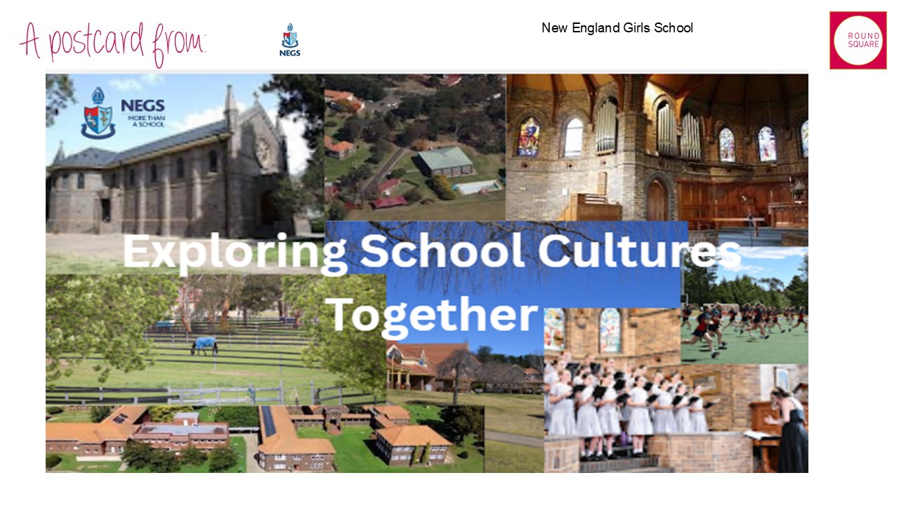 NEGS invites you to register up to six students aged 13-15 and one adult HERE for a RS Zoom Postcard with the theme “Exploring School Culture Together”.